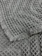 Design: A modern geometric weave combining a waffle and chevron (herringbone) pattern in a solid light grey color, finished with a short, fringed edge.